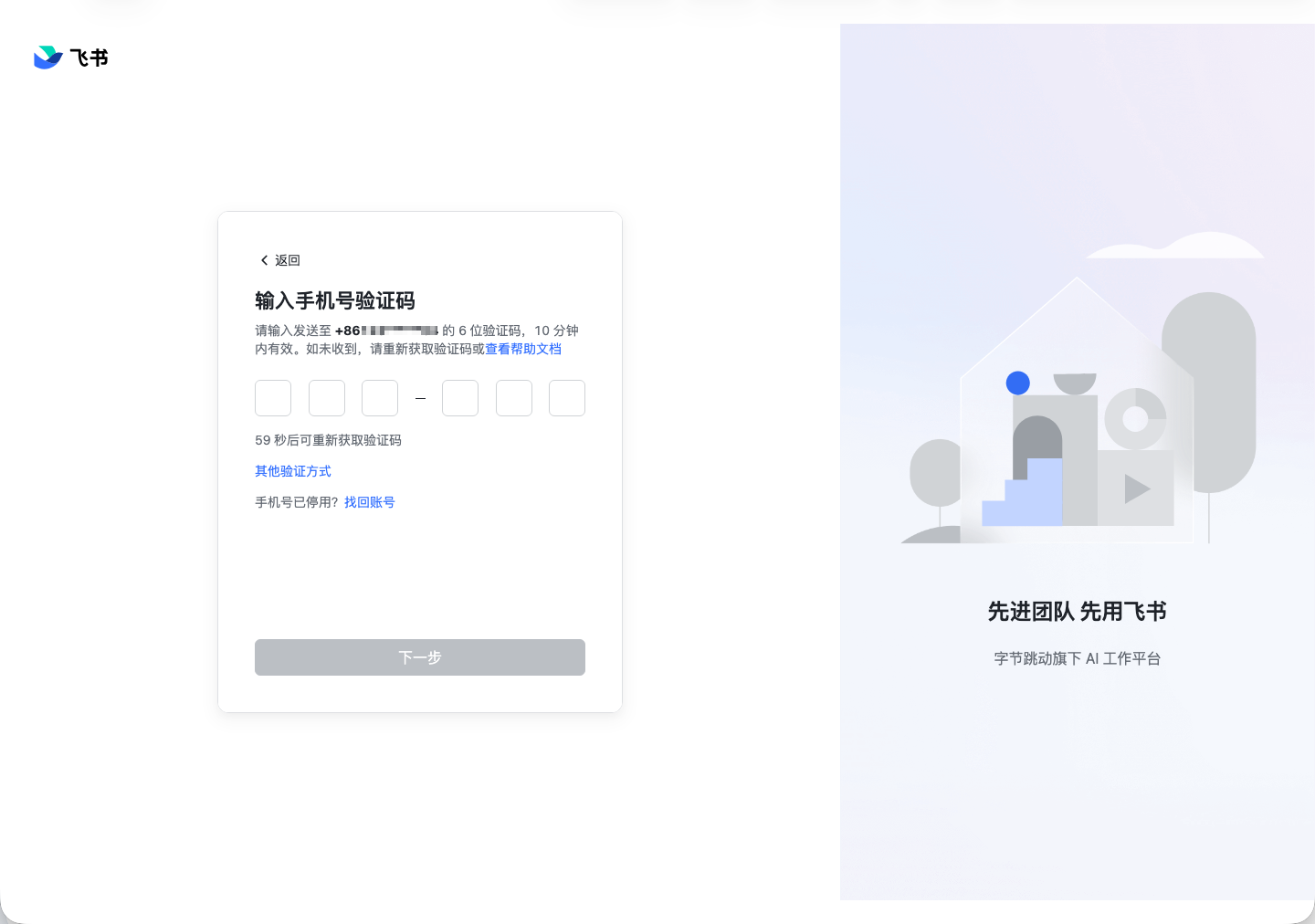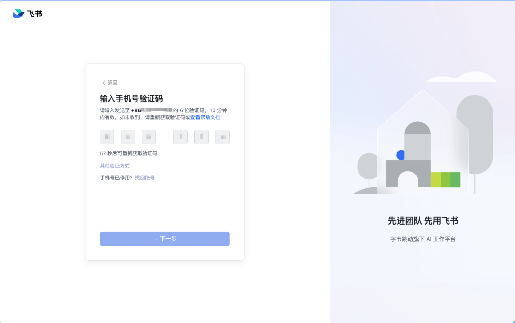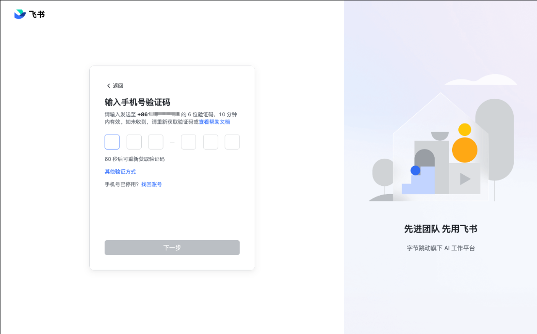 进入验证码页后,我们发现飞书验证码输入并不是普通输入框,而是 6 个独立的验证码格: